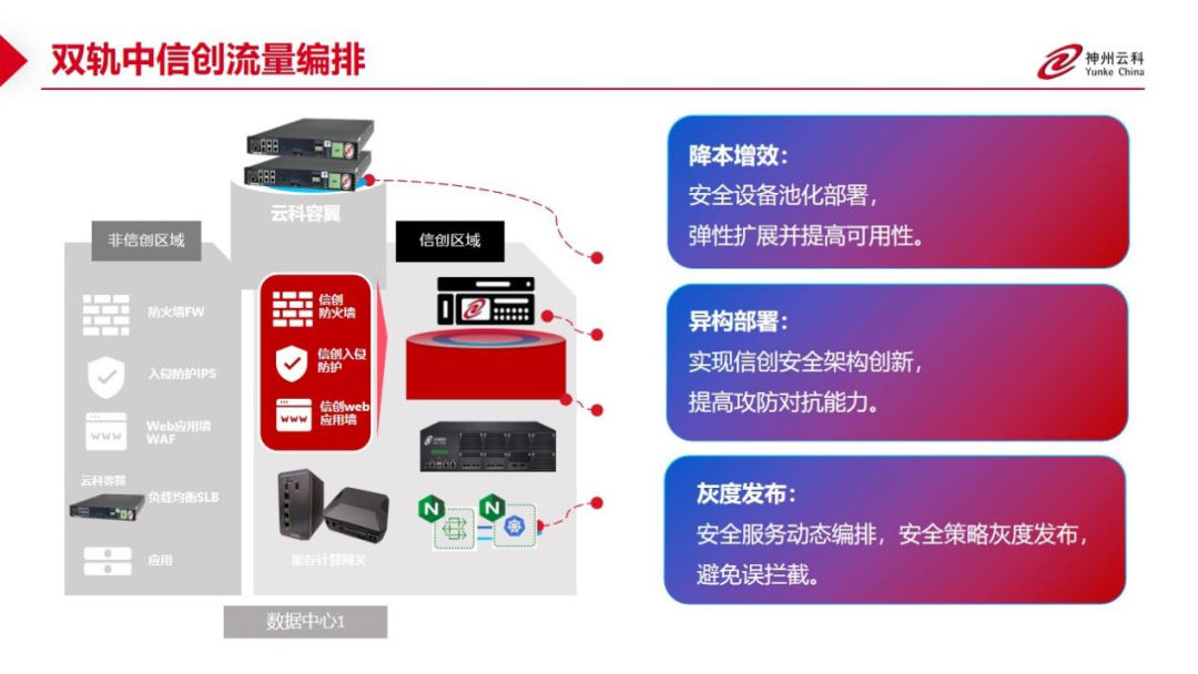 为了更好的适配双轨超高可用架构,J9国际站 J9应用交付控制器容翼系列产品和云科通明湖信创系列产品一方面可以保证信创产品的稳定性,弥合性能与企业应用要求的差距;一方面,当业务面对合规、风险和创新的挑战时,实现云原生可信开源与跨域协同。